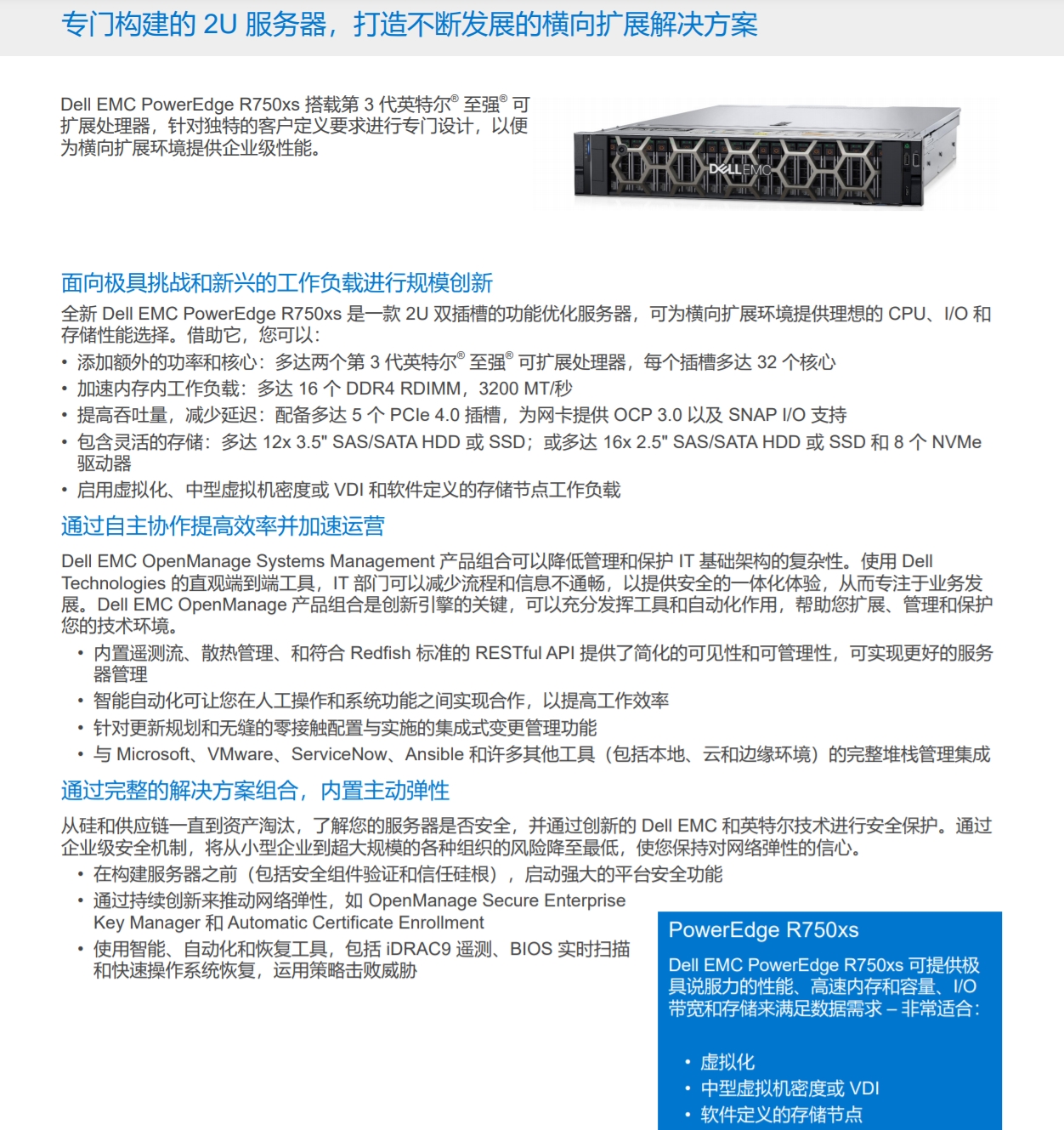Dell EMC PowerEdge R750xs針對獨特的客戶定義要求進行專門設計,以便為橫向擴展環(huán)境提供企業(yè)級性能。