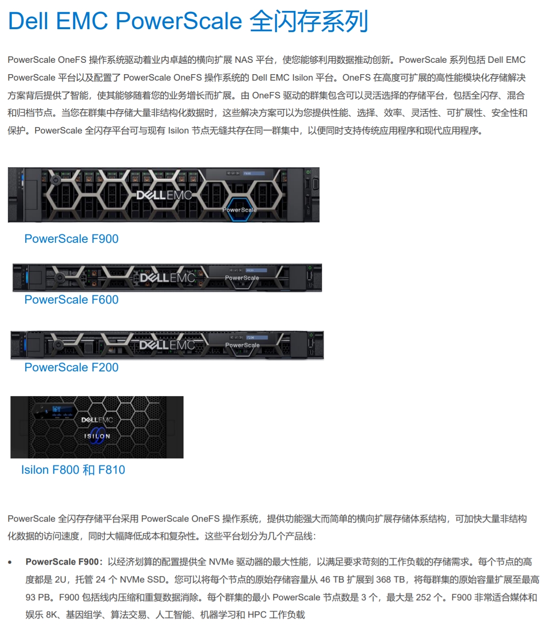 PowerScale 系列包括 Dell EMC PowerScale 平臺以及配置了 PowerScale OneFS 操作系統(tǒng)的 Dell EMC Isilon 平臺。